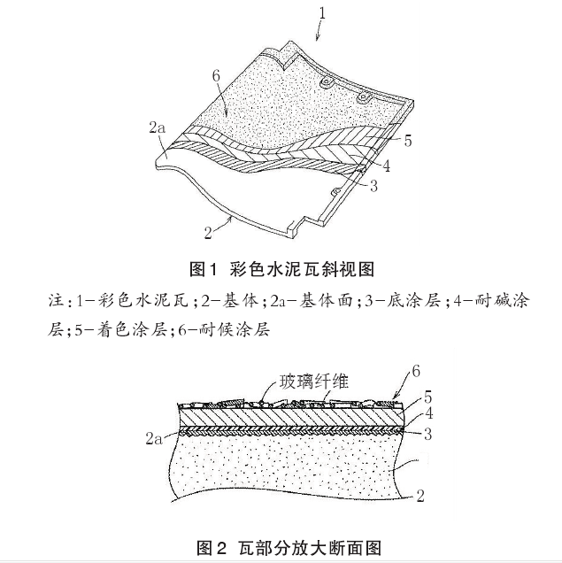 如上所述,瓦用玻璃纖維具有耐候性,加之其表面呈圓角狀,可有效對日光紫外線形成漫反射,保護(hù)著色涂層,同時還具有耐熱性和耐磨性,可保護(hù)各涂層不受風(fēng)雨和高溫的損害。因此,在彩色水泥瓦表面形成的耐候性涂層,可延長瓦在惡劣環(huán)境下的使用年限,長期保持瓦強(qiáng)度和美觀。耐候性涂料是在與著色涂層用的廉價水性丙烯酸涂料中加入玻璃纖維混合而成,與涂以防紫外線涂料相比,成本低。此外,當(dāng)日光射到瓦表面時,與耐候性涂層中玻璃纖維相遇形成光的漫反射,瓦面色調(diào)呈無光澤狀,著色涂層色調(diào)顯得更典雅。